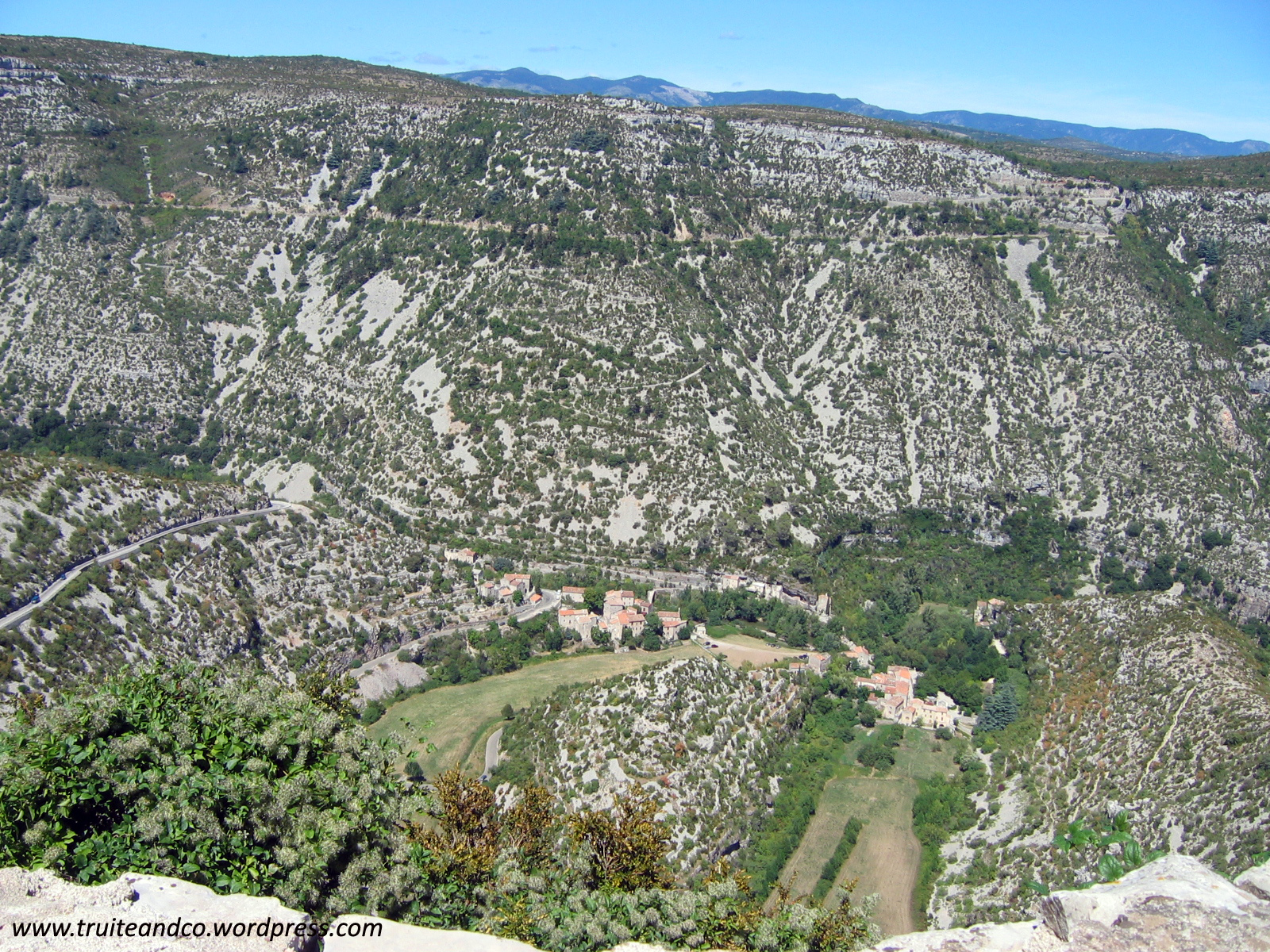 En face, le causse de Blandas, haut plateau calcaire de prés de 1000 m de hauteur par endroits.