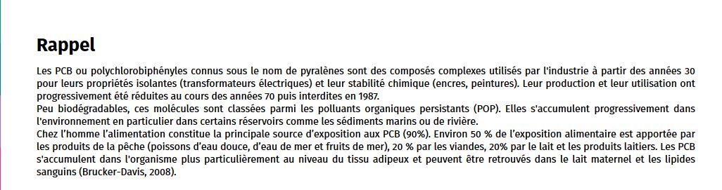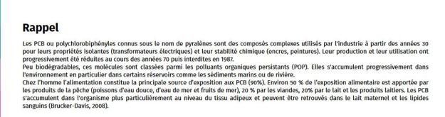 Ce qui n’est pas rien. Et pourtant, beaucoup de pêcheurs informés ou pas, continus à conserver les poissons pêchés, sur ces mêmes parcours de pêche. Je connais beaucoup de société de pêche concernée par cet arrêté dans notre région et certaines d’elles ne fais pas ou ne veulent pas mettre en affichage cette information. Mais cela pourra nuire à la vente de leurs cartes de pêche et donc pour ne pas risquer cette perte, on préfère jouer la politique de l’autruche et ignorer la santé des concitoyens.
