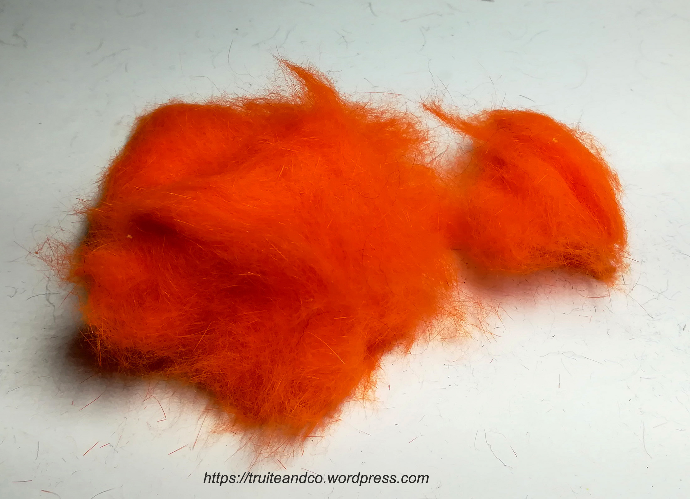 Dubbing orange, poils prélevés sur une peau de renard arctique