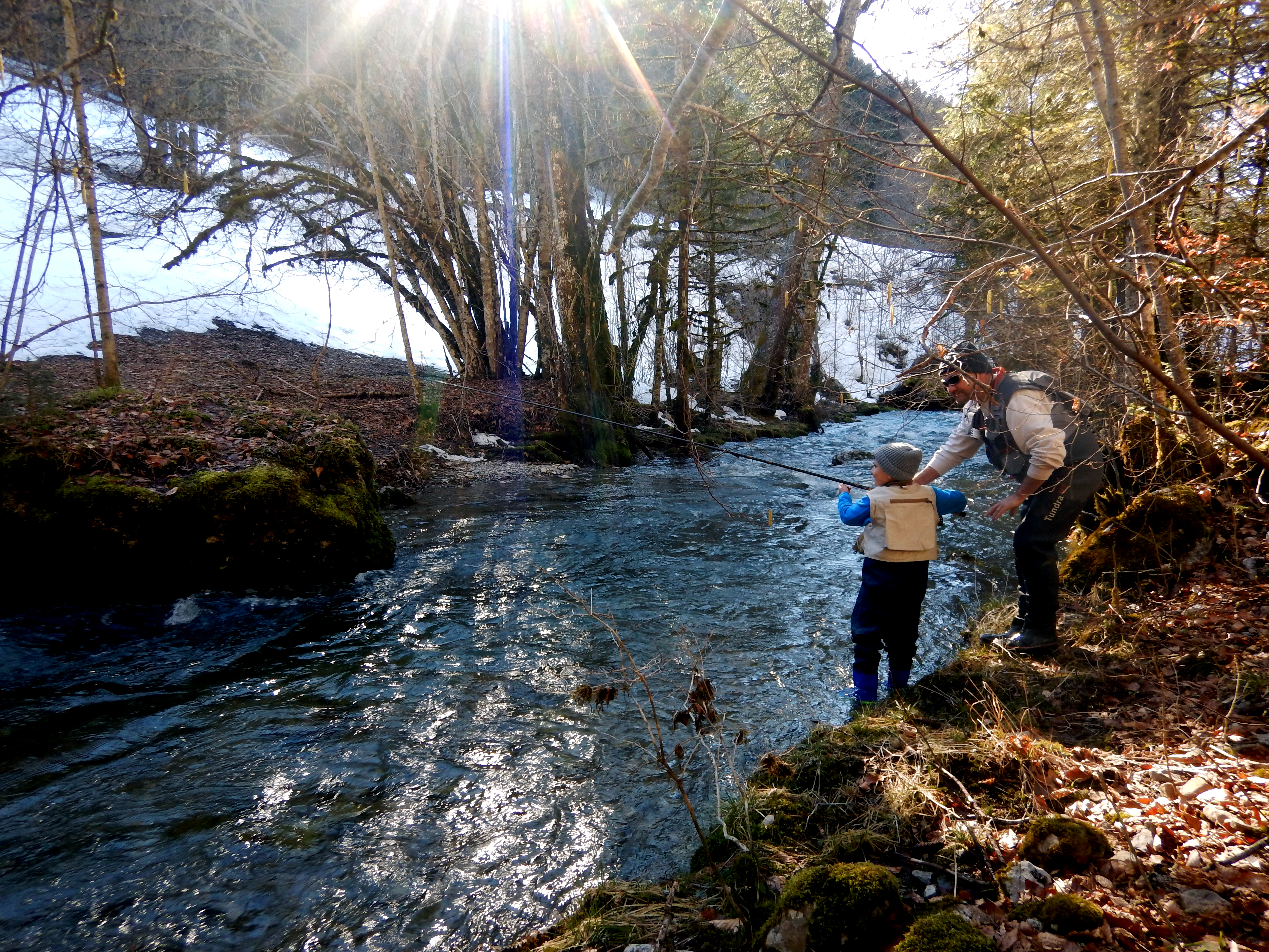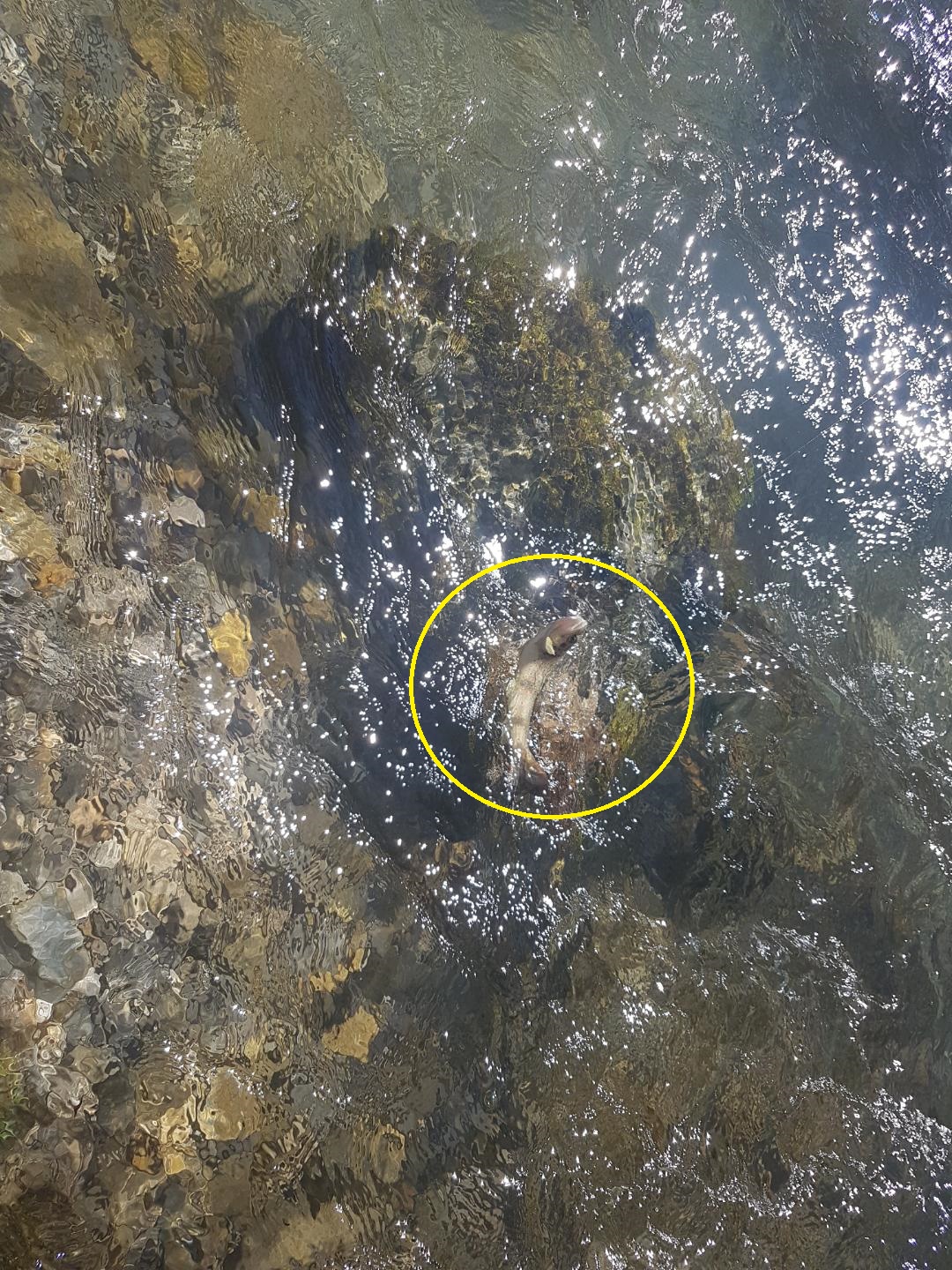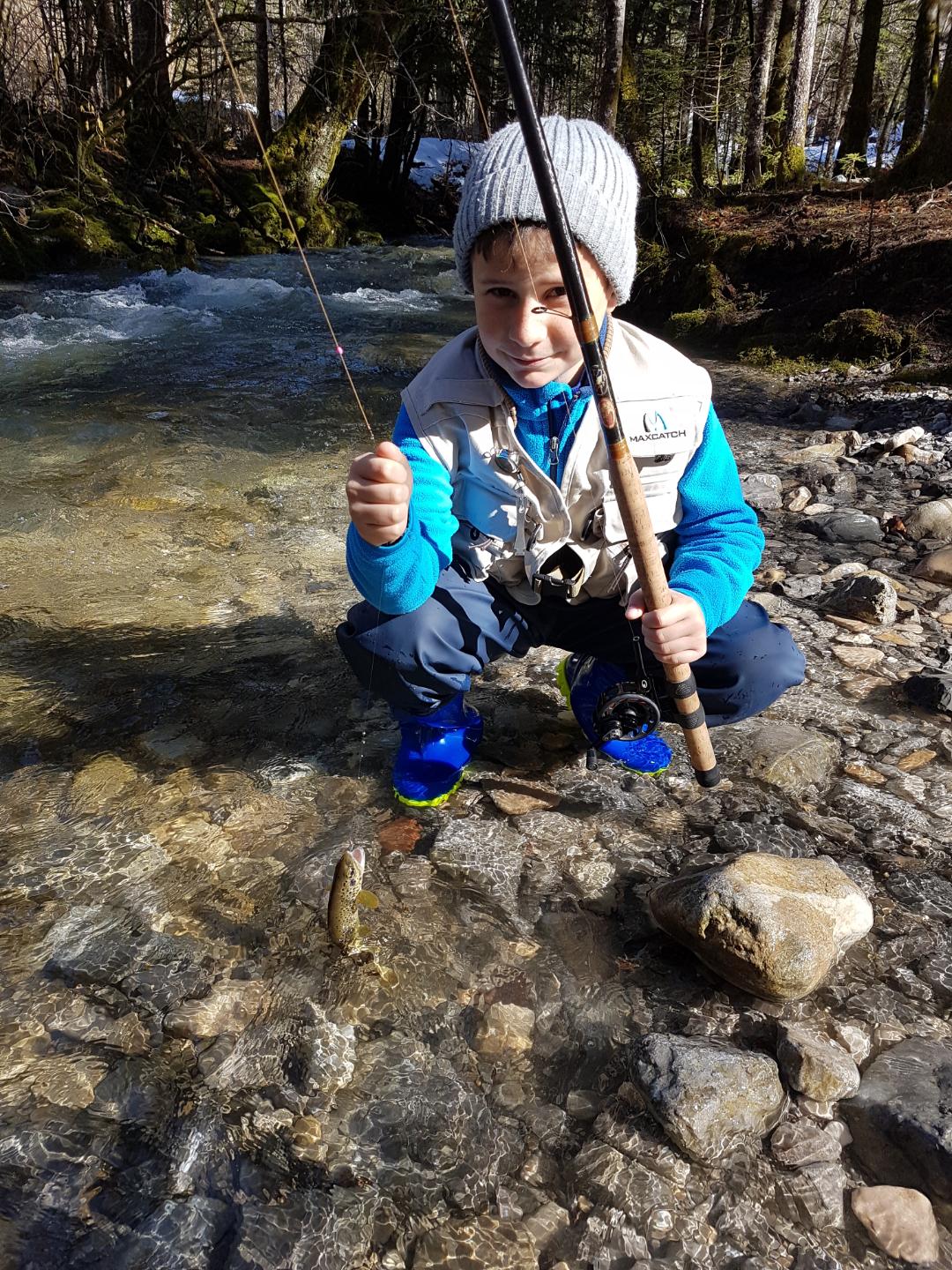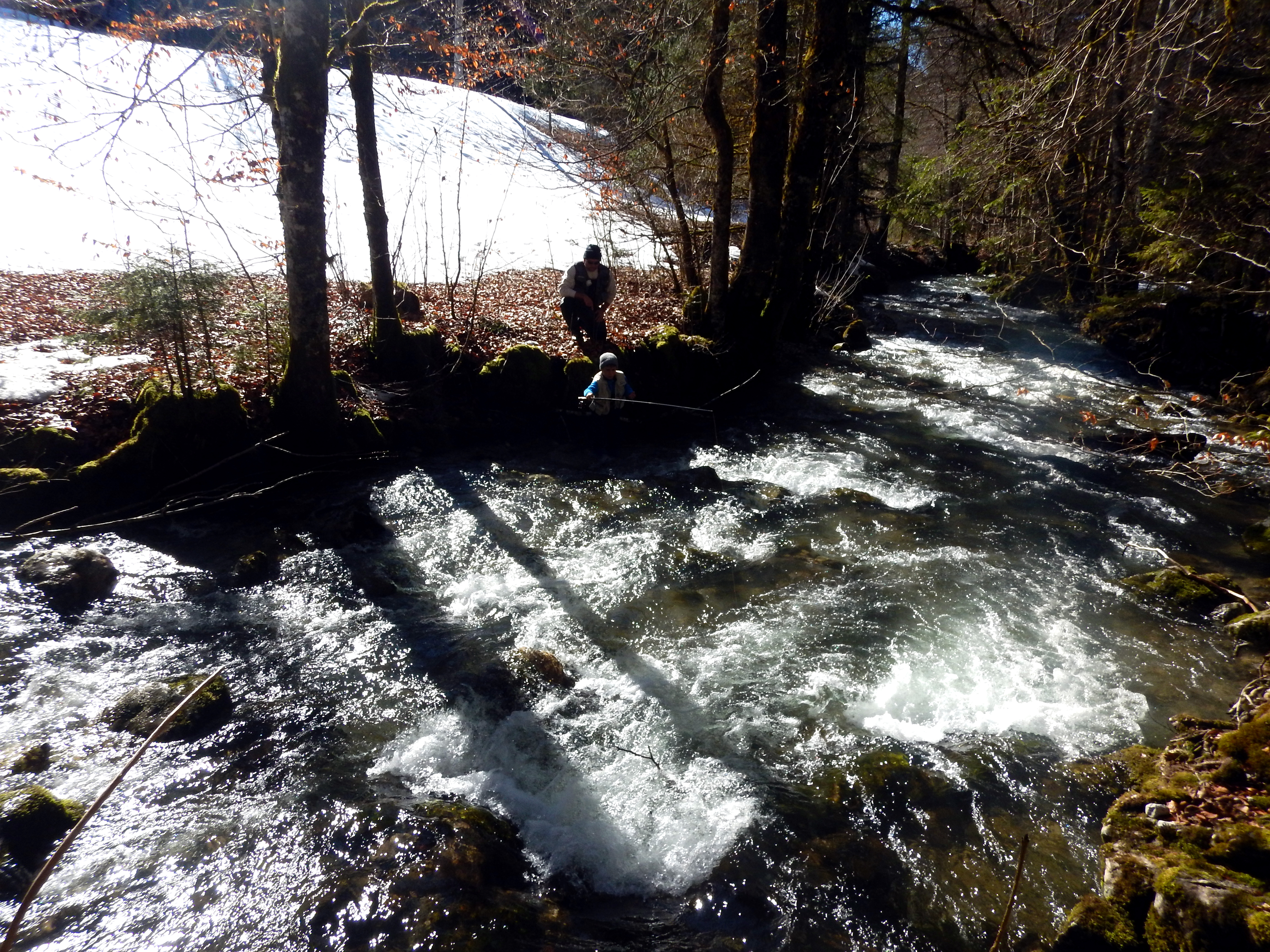 Elles étaient bien calées sur le fond et il m’a fallut pêcher au fil seulement, en faisant évoluer ma nymphe à ras du fond, sur le 1er poisson j’avais un « Javi cuivre en 3,5 mm », en mode pheasant tail, que j’ai perdu dans une racine, un bloc ou une branche sur le fond de la rivière, du coup j’ai opté pour une autre nymphe Javi, toujours en 3,5 mm et c’est celle-ci qui m’a permis les autres poissons, je vais terminer ma session tant bien que mal, avec au total 8 truites de prises dont deux dépiquées.